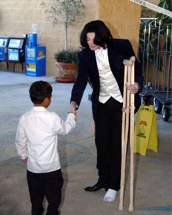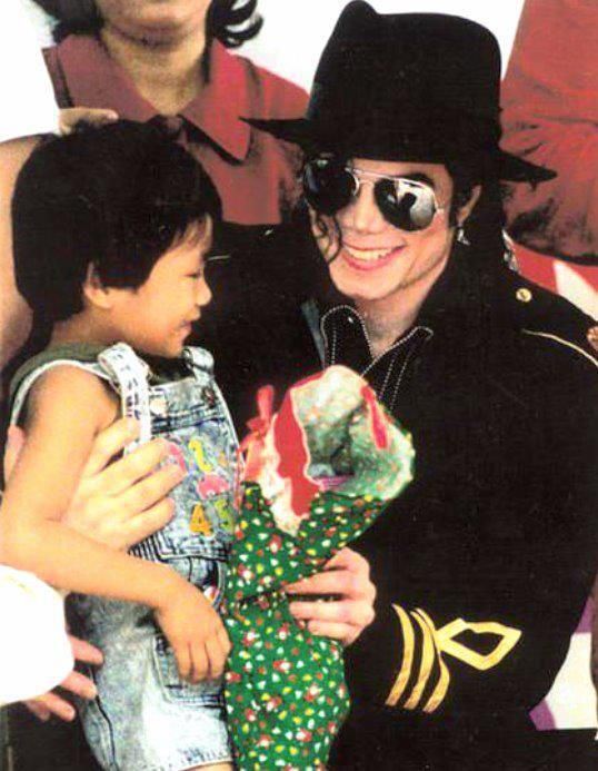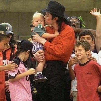the hand on the left belongs to someone else, the person handing him the child, it's not Michael's. it's not photoshoppedThis looks seriously photo-shopped, do you see the hands are not the same and the nose and the eyeglasses arm is missing???